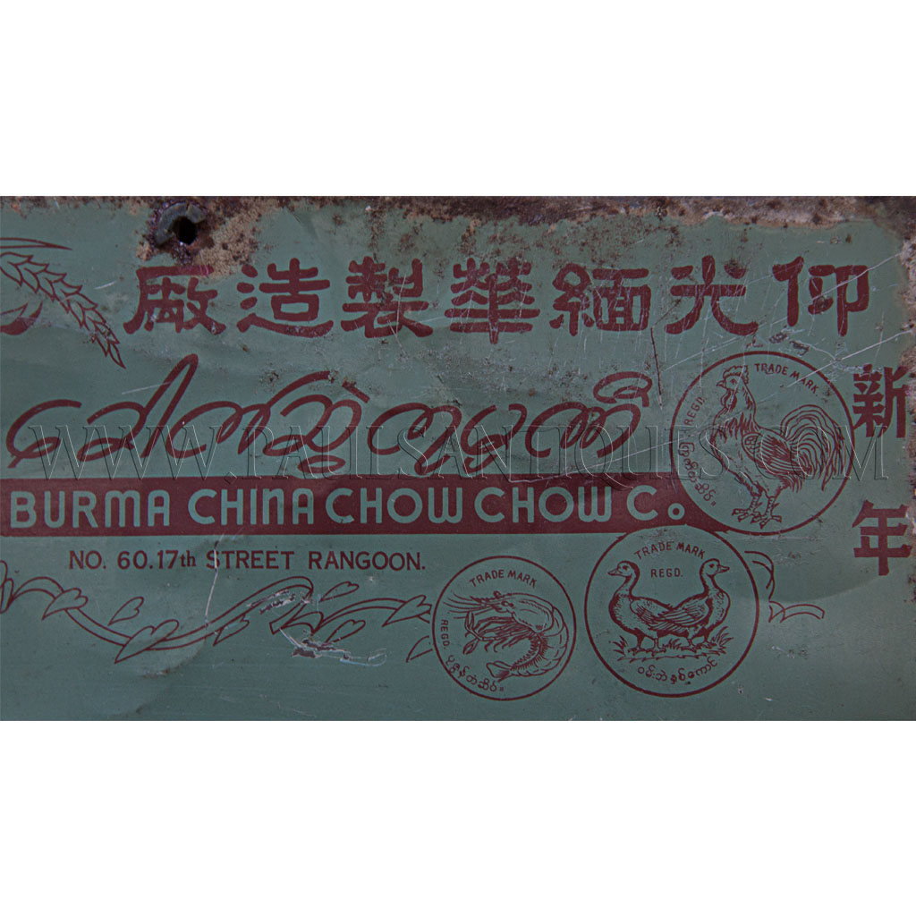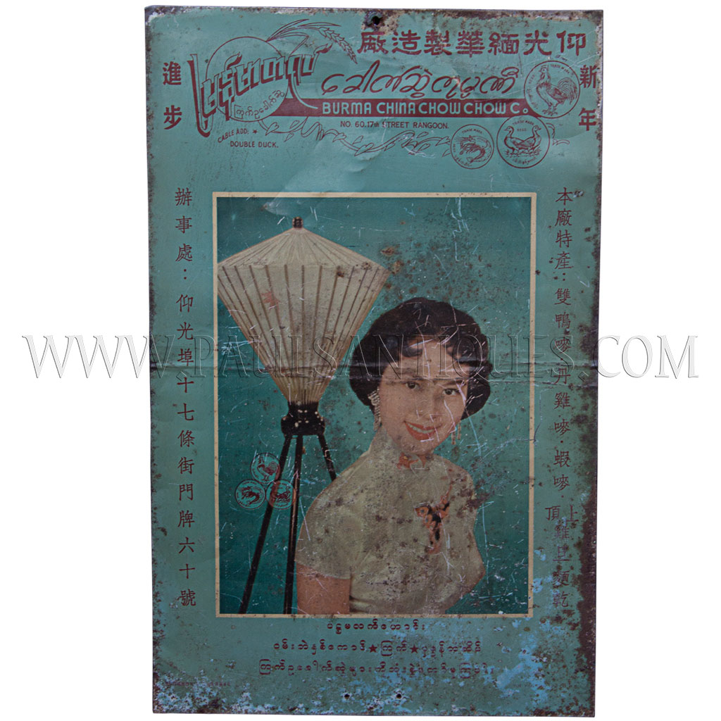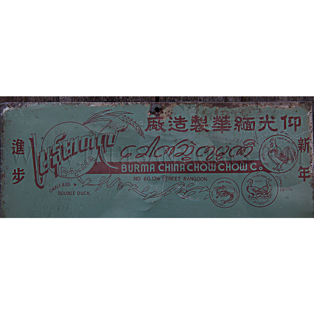 Vintage Burmese Metal Double Duck Brand Burma Chow Chow Co. Rangoon Egg Noodle Sign