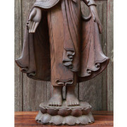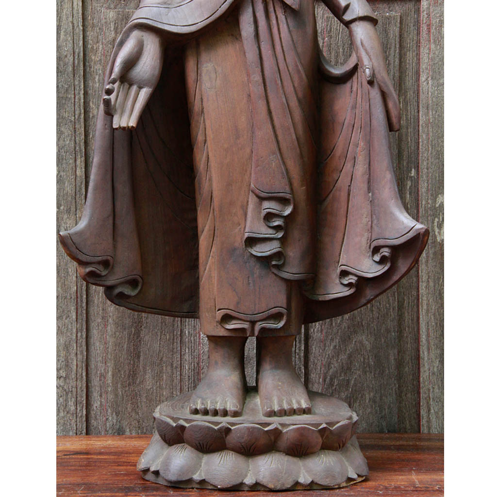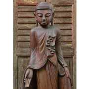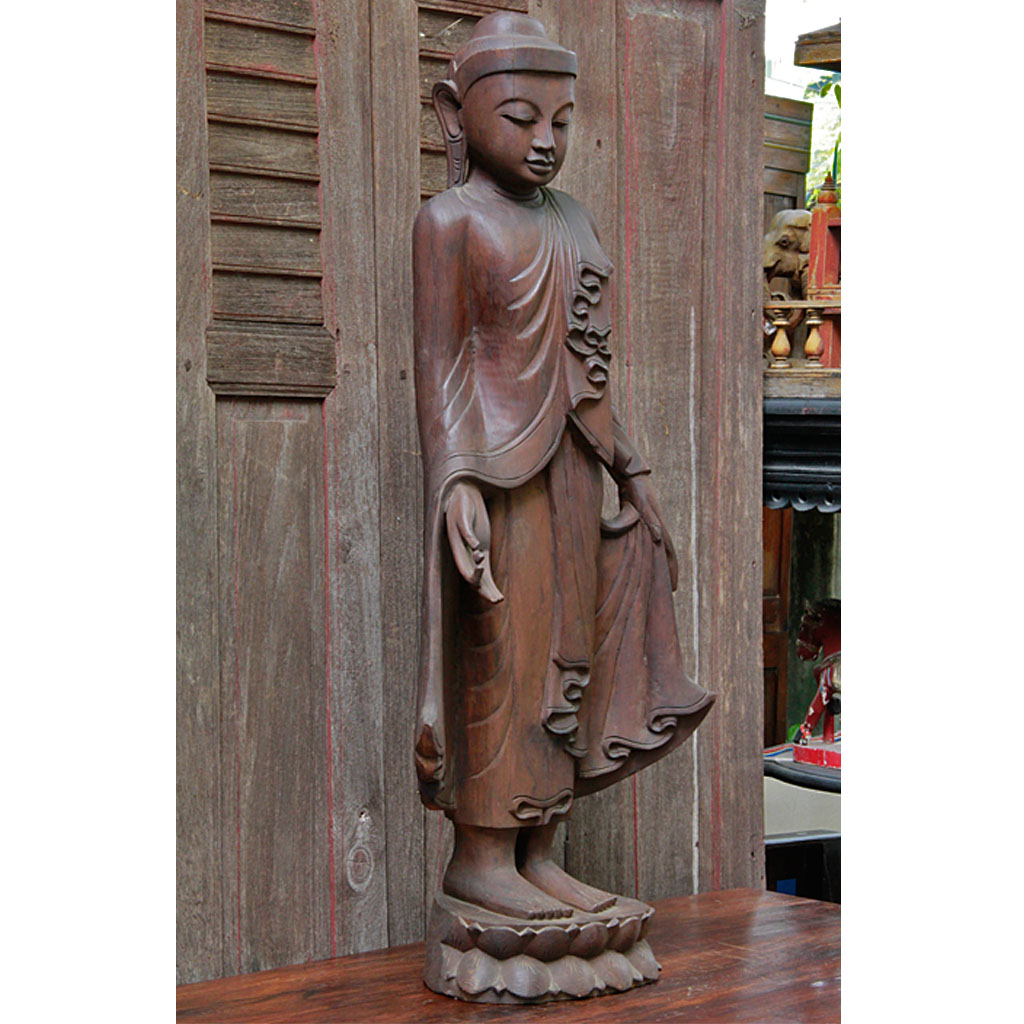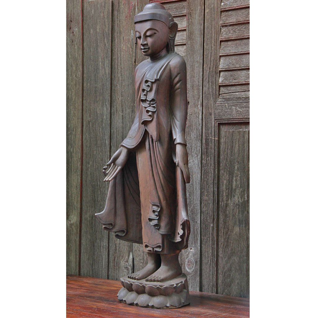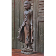 Large Burmese Teak Buddha Standing Upon Lotus in Bestowing Teachings Mudra