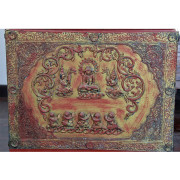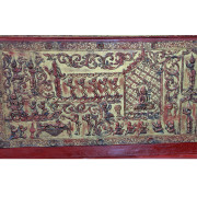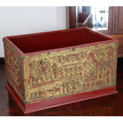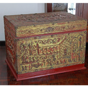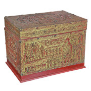 Burmese Gilded Moulded Relief “Sadaik” Lacquered Teak Manuscript Chest