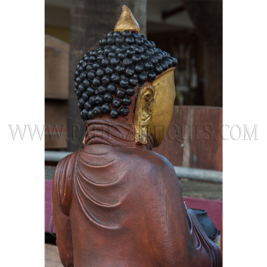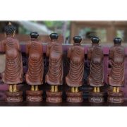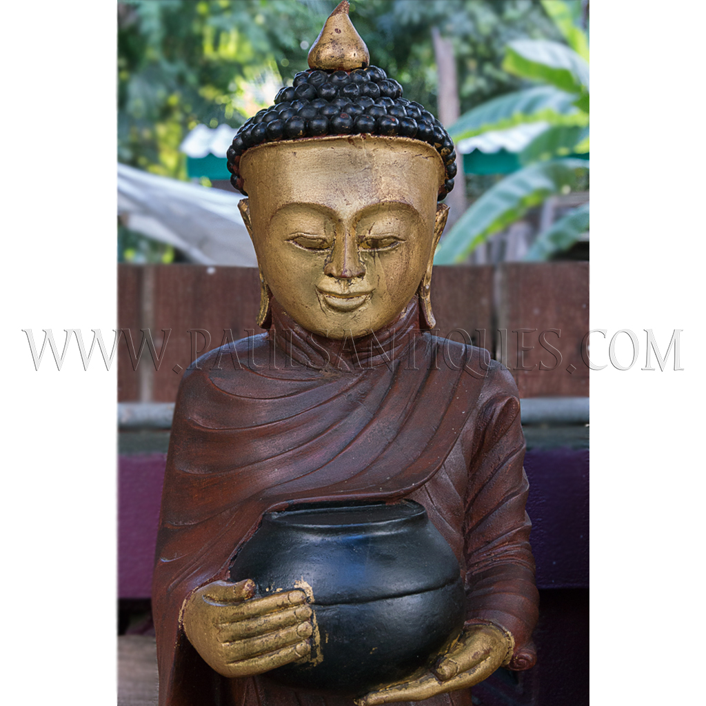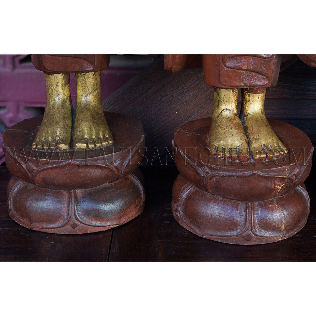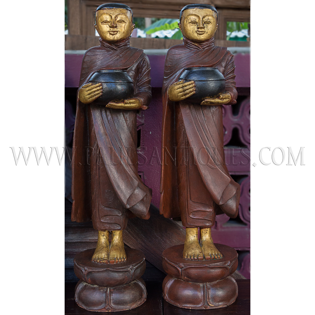 Large Burmese Teak Carvings of Buddha and Disciples on Alms Rounds
