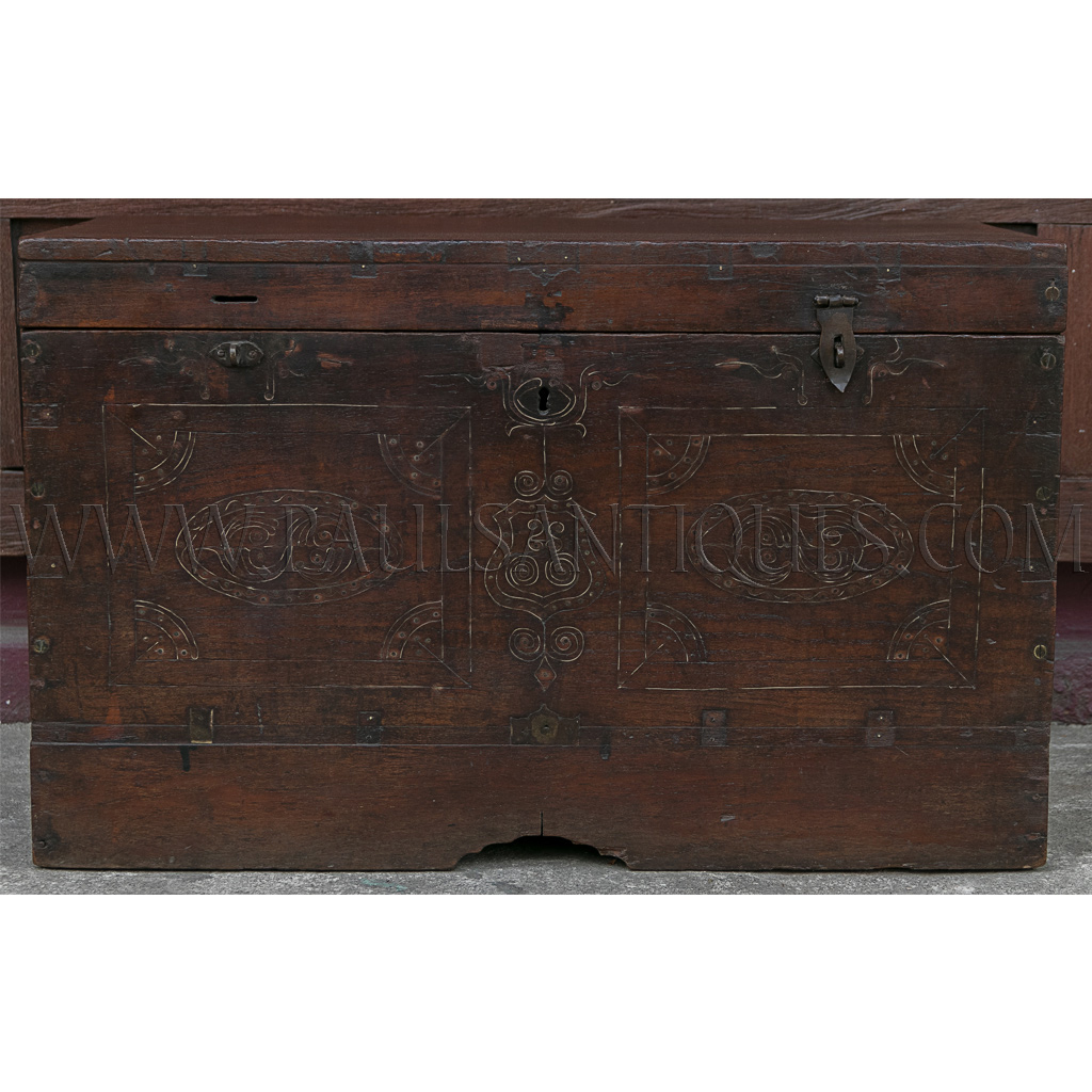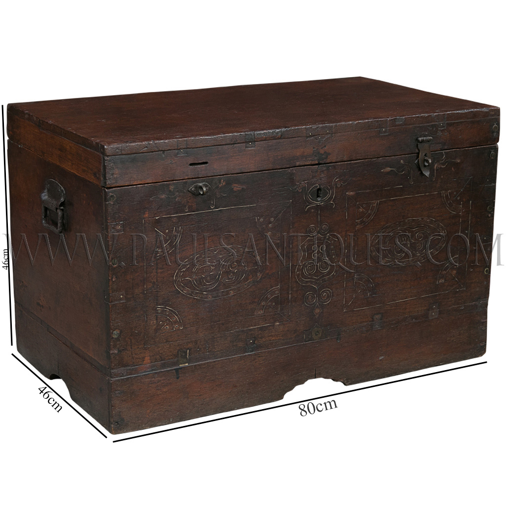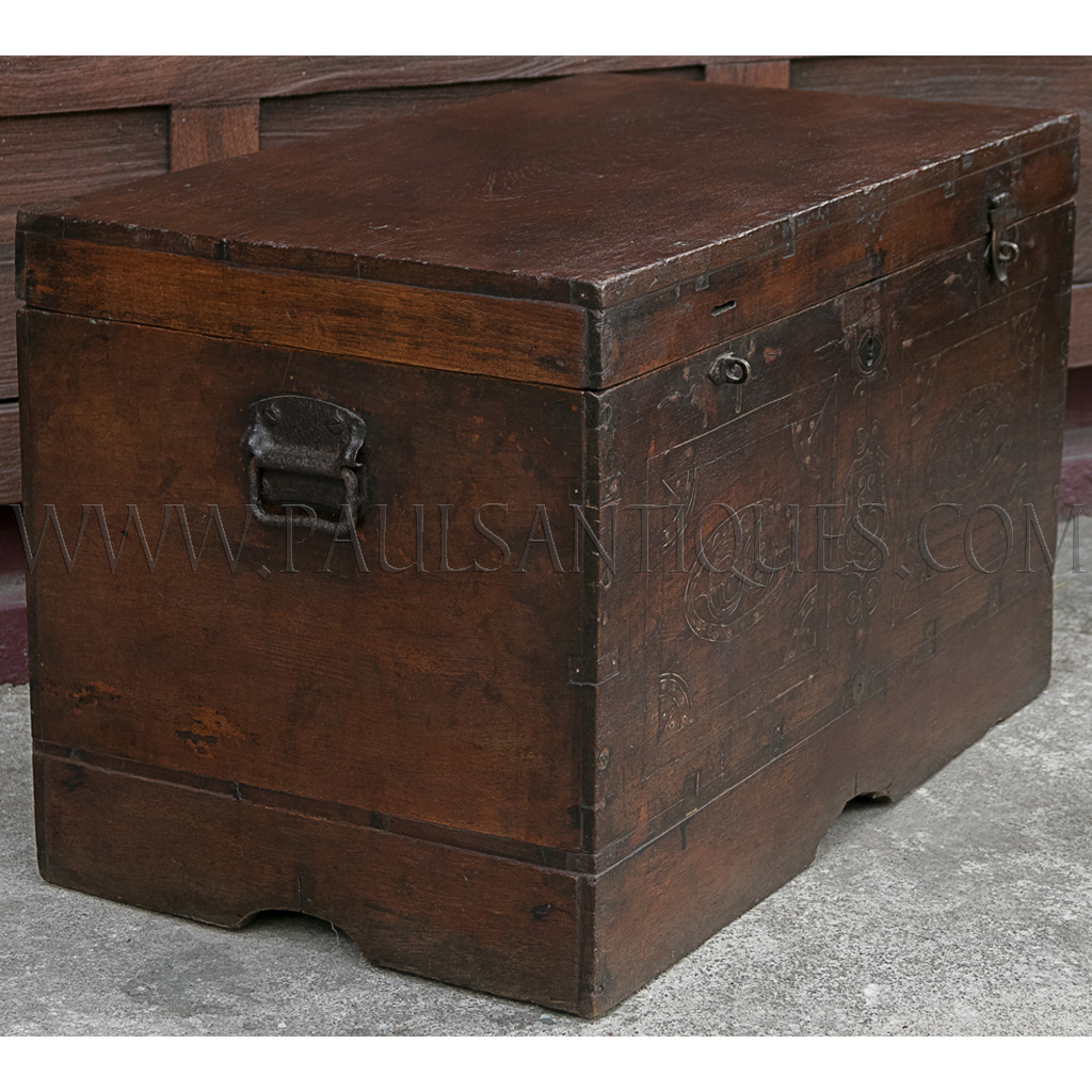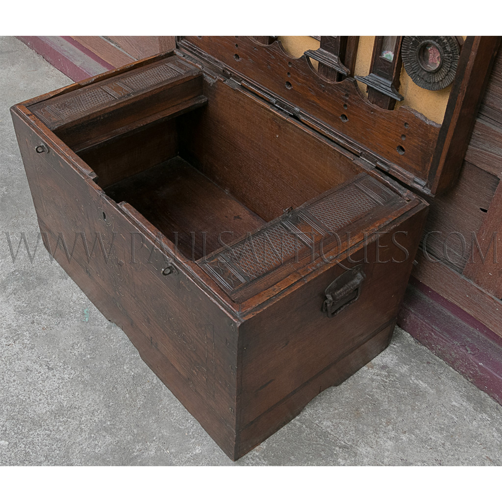 Antique Burmese Teak with Brass Inlay Design Wedding Chest