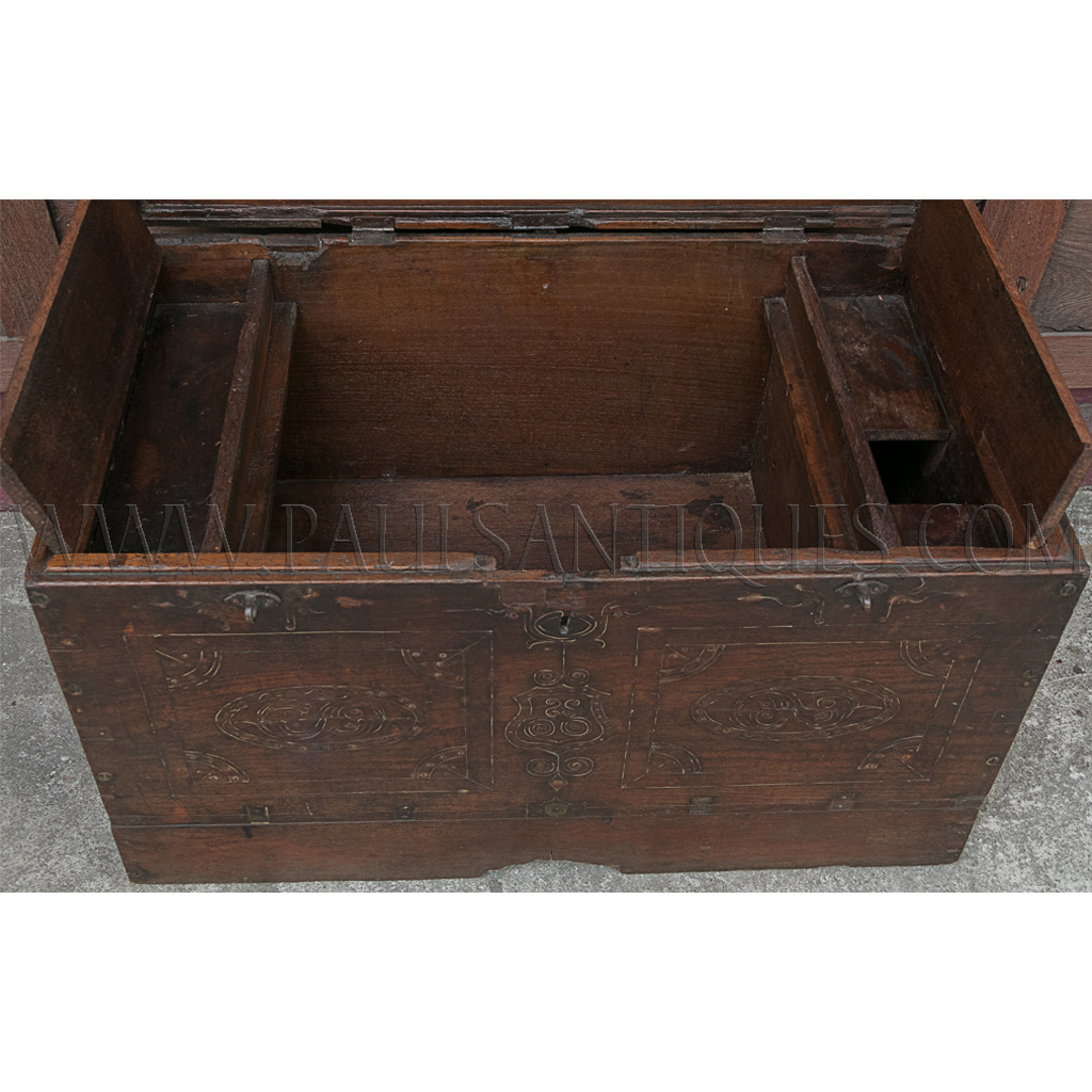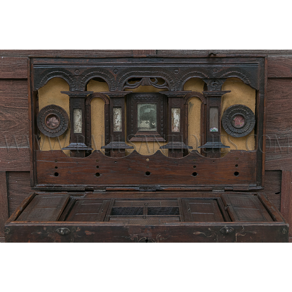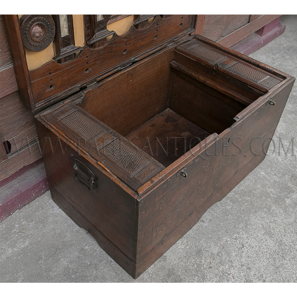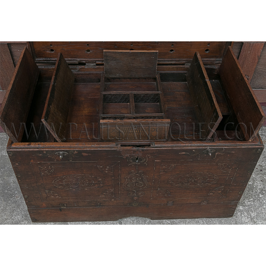 Antique Burmese Teak with Brass Inlay Design Wedding Chest