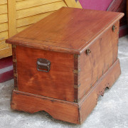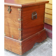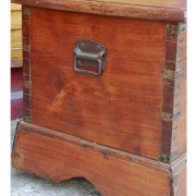 Large Antique Burmese Traveling Teak Chest on Wheels with Brass Fittings