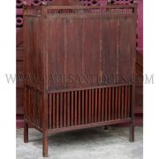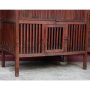 Antique teak wood kitchen cabinet / meat safe from Thailand in a rare slated wood design.  Perhaps one of the most common pieces of furniture throughout Southeast Asian, such kitchen cabinets would be used to store live (such as chickens below) and fresh food items.
